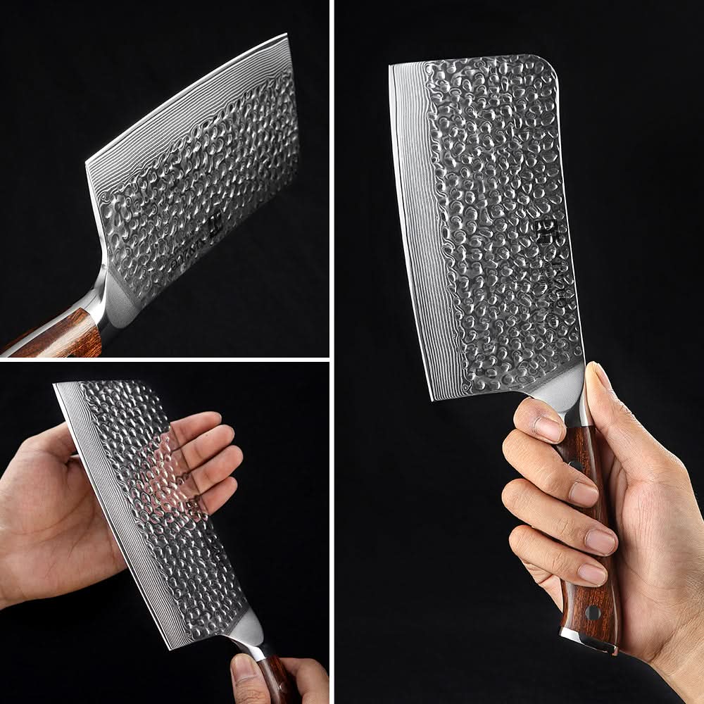 XINZUO YU STRIA HAMMER DAMASCUS 6.5" Bone Chopper Knife